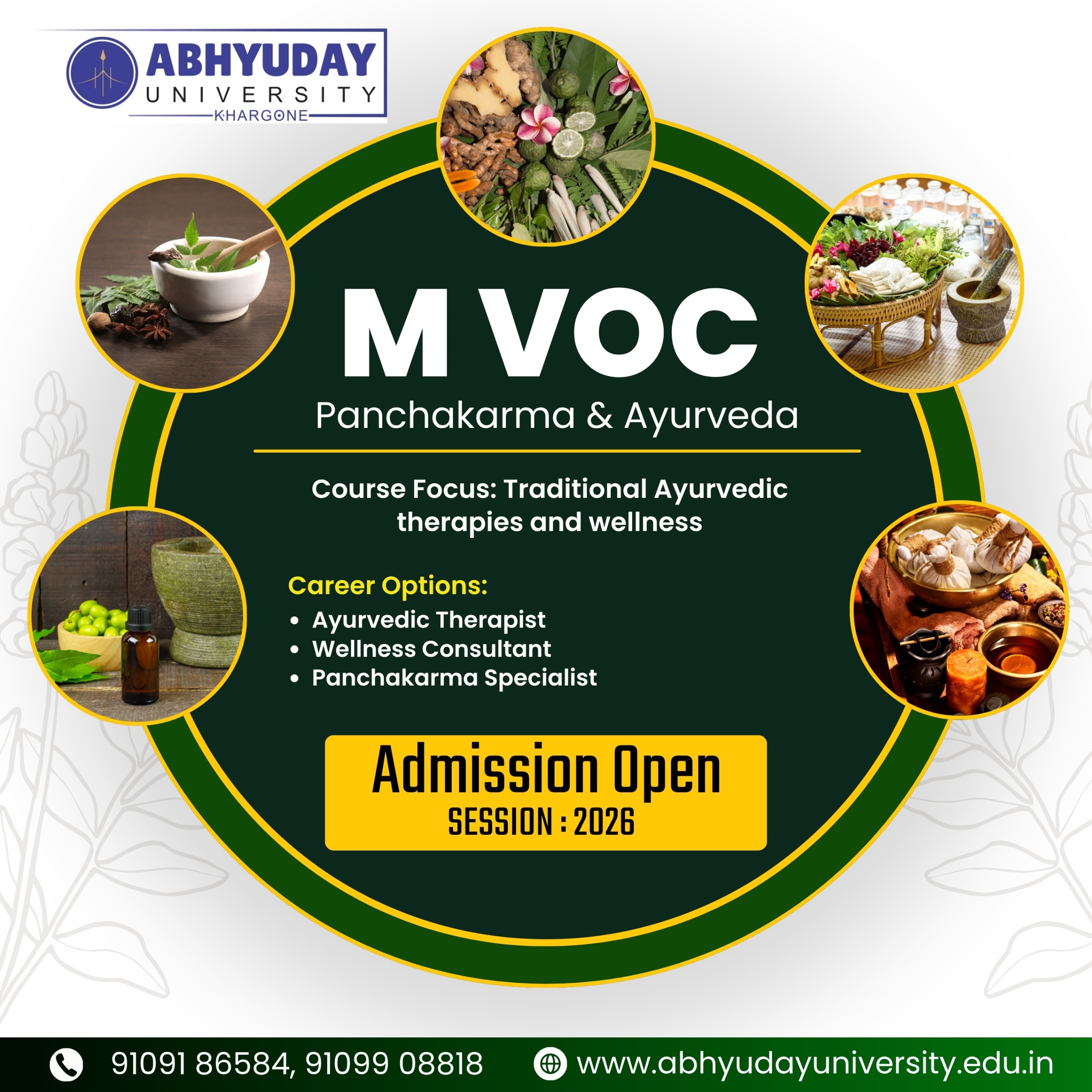 Candidates must have completed B.Voc / Bachelor’s degree in Ayurveda, Panchakarma, Life Sciences, or related field.